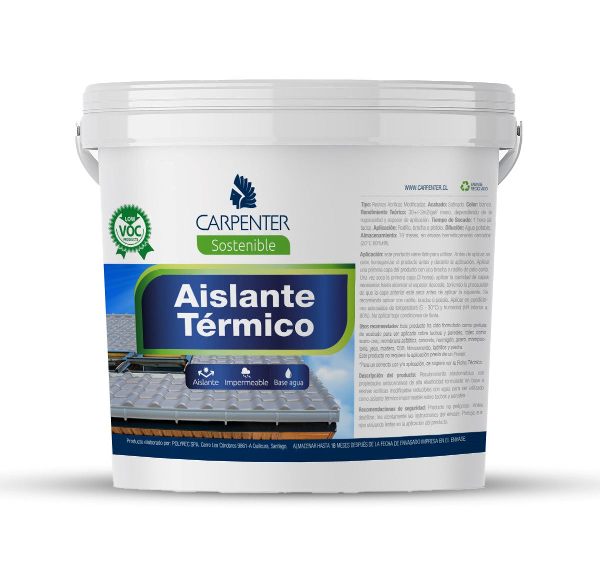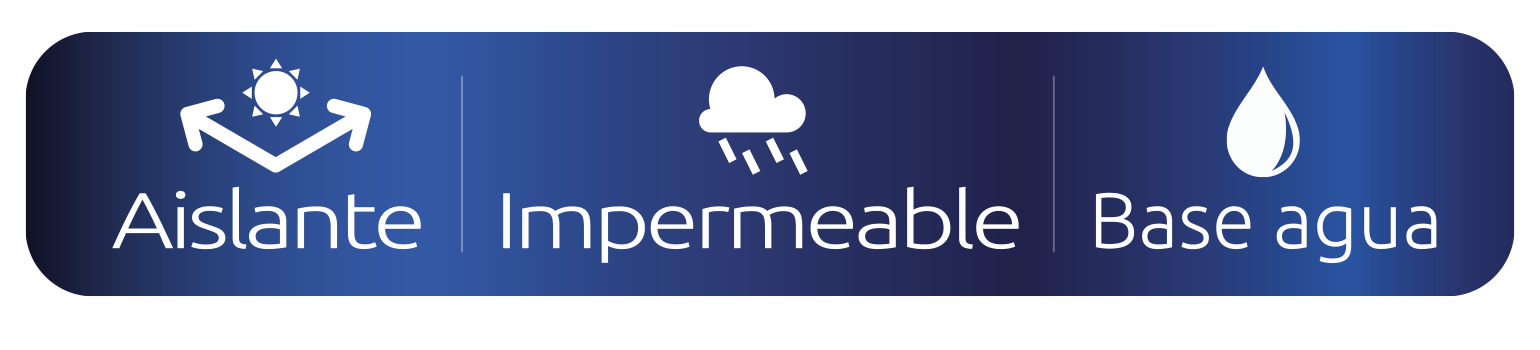 de alta elasticidad formulado en base a resinas acrílicas modificadas reducibles con agua para ser utilizado como aislante térmico impermeable sobre techos y paredes.